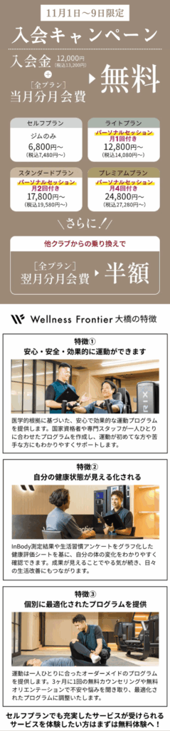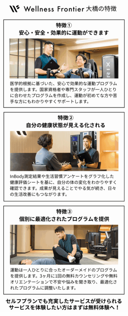 福岡・大橋駅徒歩1分。メディカルフィットネスジム「ウェルネスフロンティア」
